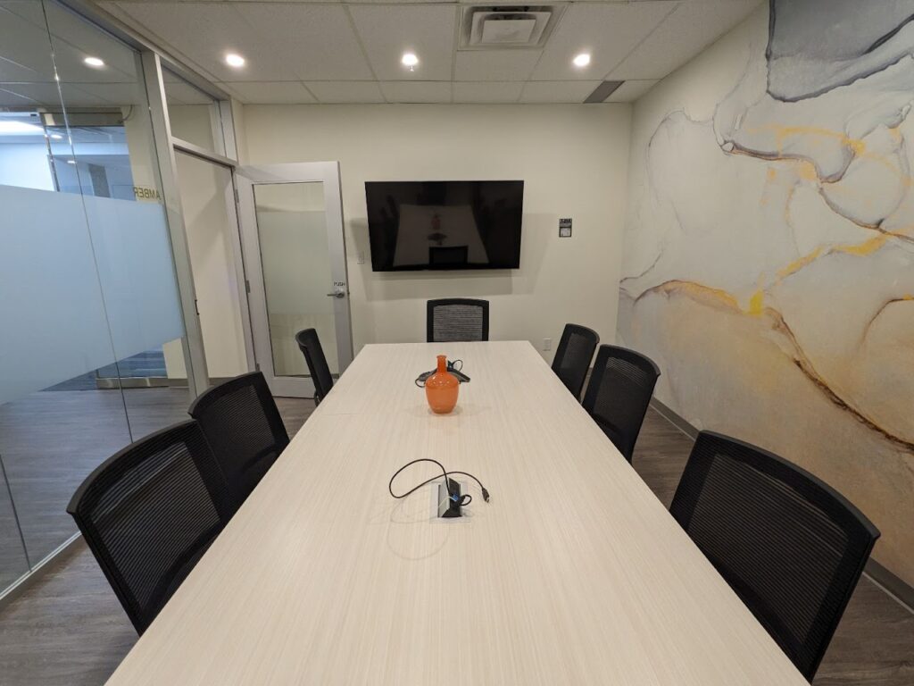 The BriteSpace facility provides five (5) professionally designed Business Meeting Rooms with modern style and finishes. Our larger meeting spaces can accommodate 14-20 individuals while the medium size boardroom can accommodate 6-8 individuals. And for more intimate meeting spaces, our conference room supports seating for up to 3 people. All of our boardrooms are well-equipped with state of the art audio/visual projectors. Our members can have lunches and snacks catered while brainstorming or simply just enjoying our complimentary gourmet coffee and tea.